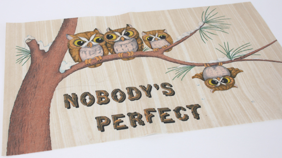 Oh my, the cute-o-meter just exploded! Check out this super fun ‘Nobody’s Perfect’ slogan poster featuring a family of owls bundled together on a snowy branch and a naughty little scamp hanging upside down. Guess he’s the one who’s not perfect. You can bid for it here.