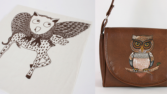 I’m a big fan of design duo Brennan and Burch and at one of their Clothes Show sales I bagged a top with the owl illustration above. I’m an absolute horror when it comes to washing my clothes though and instantly screwed the waistband and neckline by tumble drying it. Ruined. So I cut out the illustration with the intention of sewing it into a back panel of a denim jacket. This as you can see hasn’t happened, so over to you members of the sewing and craft elite to do what you will with this super cool fabric scrap. For the non-sewing owl fans is the best owl bag in the universe. Ever.